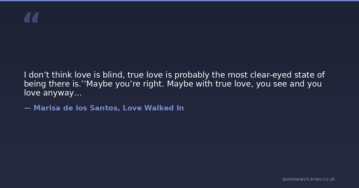 I don’t think love is blind, true love is probably the most clear-eyed state of being there is.’‘Maybe you’re right. Maybe with true love, you see and you love anyway…