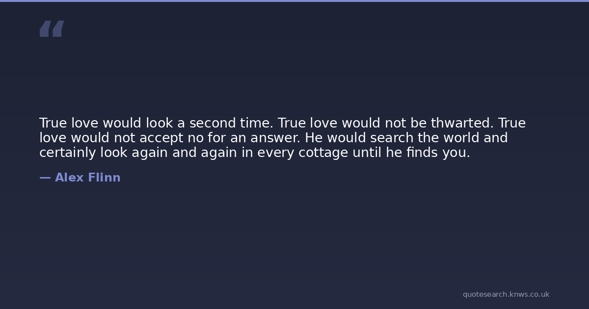 True love would look a second time. True love would not be thwarted. True love would not accept no for an answer. He would search the world and certainly look again and again in every cottage until he finds you.