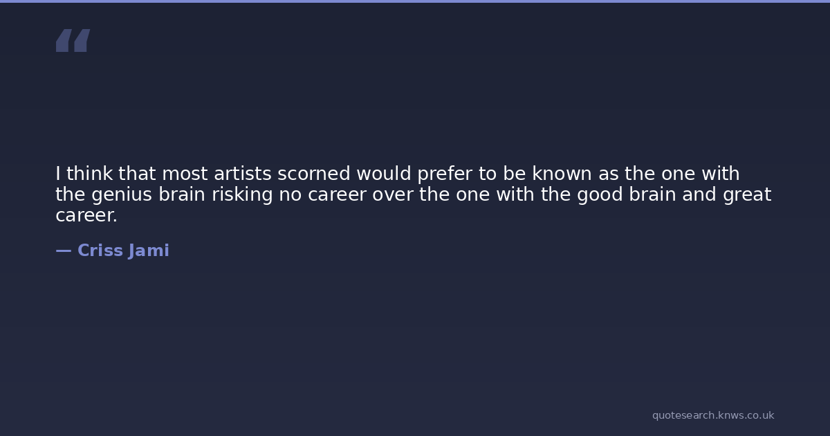 I think that most artists scorned would prefer to be known as the one with the genius brain risking no career over the one with the good brain and great career.
