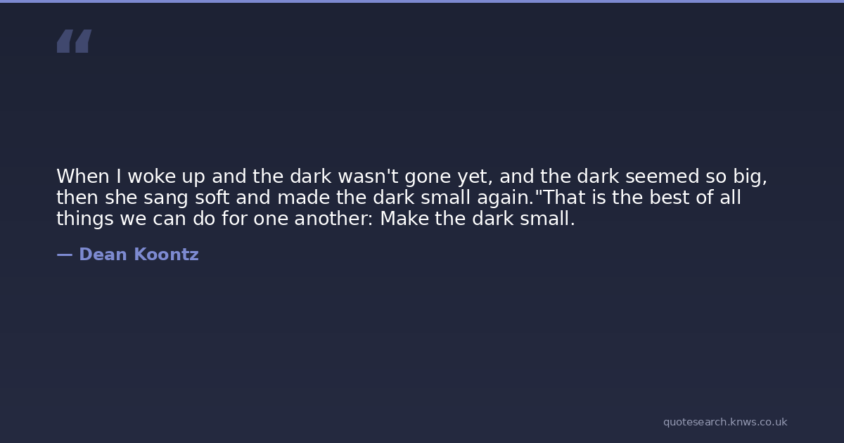 When I woke up and the dark wasn't gone yet, and the dark seemed so big, then she sang soft and made the dark small again."That is the best of all things we can do for one another: Make the dark small.