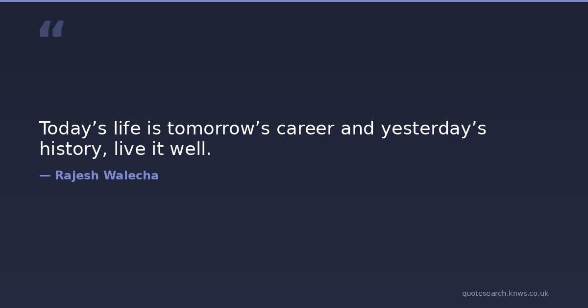 Today’s life is tomorrow’s career and yesterday’s history, live it well. life-lessons-quotes Download Image Share on X Share on Facebook Copy Link