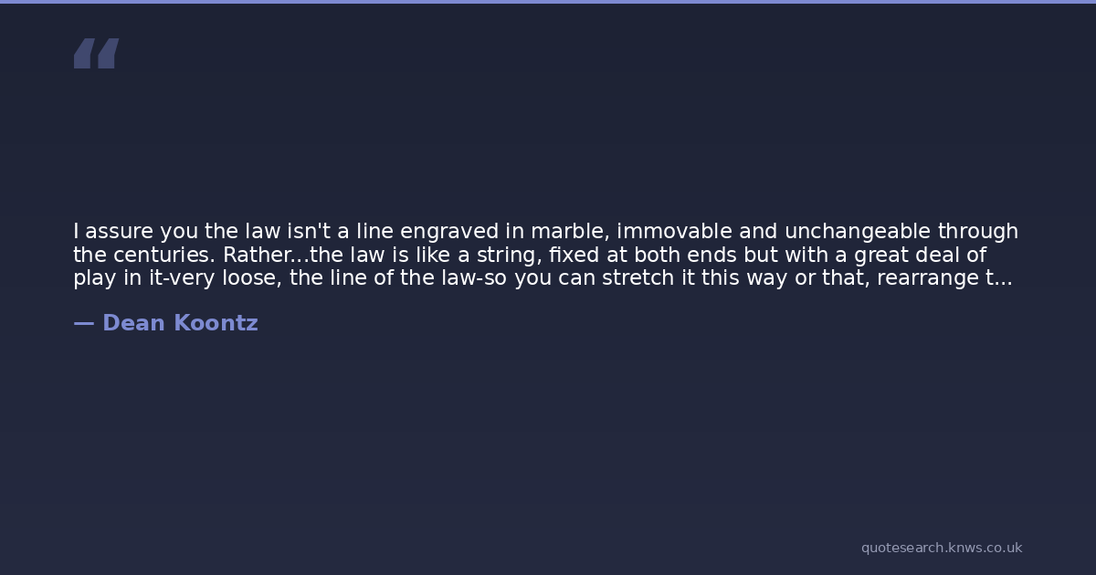 I assure you the law isn't a line engraved in marble, immovable and unchangeable through the centuries. Rather...the law is like a string, fixed at both ends but with a great deal of play in it-very loose, the line of the law-so you can stretch it this way or that, rearrange the arc of it so you are always-short of the blantant theft or cold-blooded murder-safely on the right side.