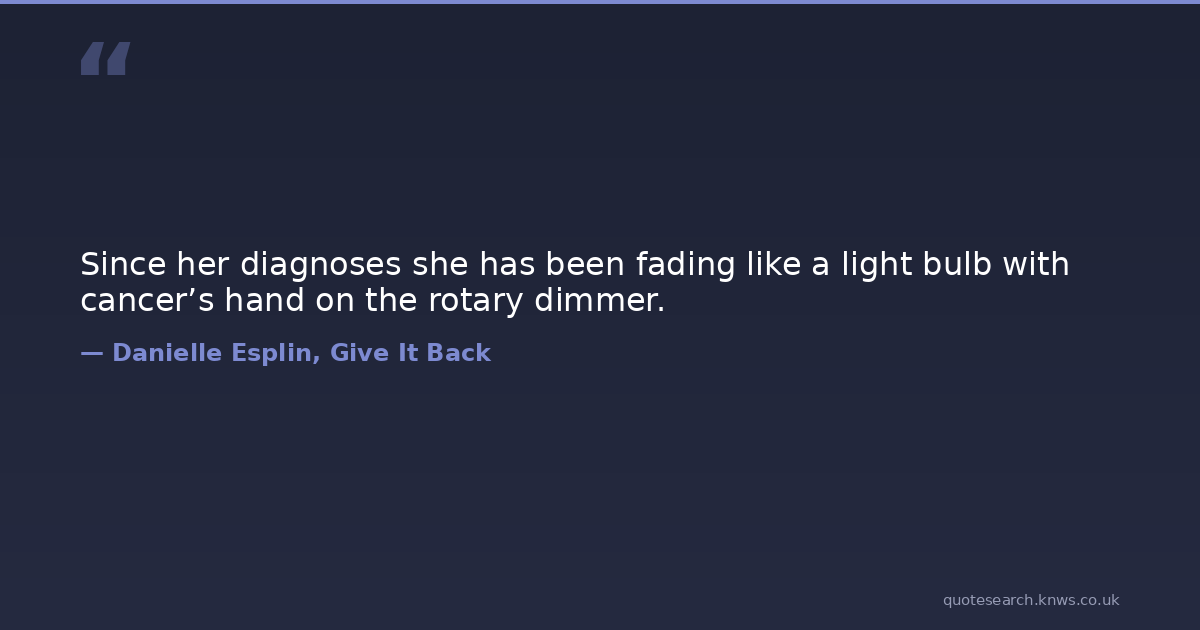 Since her diagnoses she has been fading like a light bulb with cancer’s hand on the rotary dimmer.