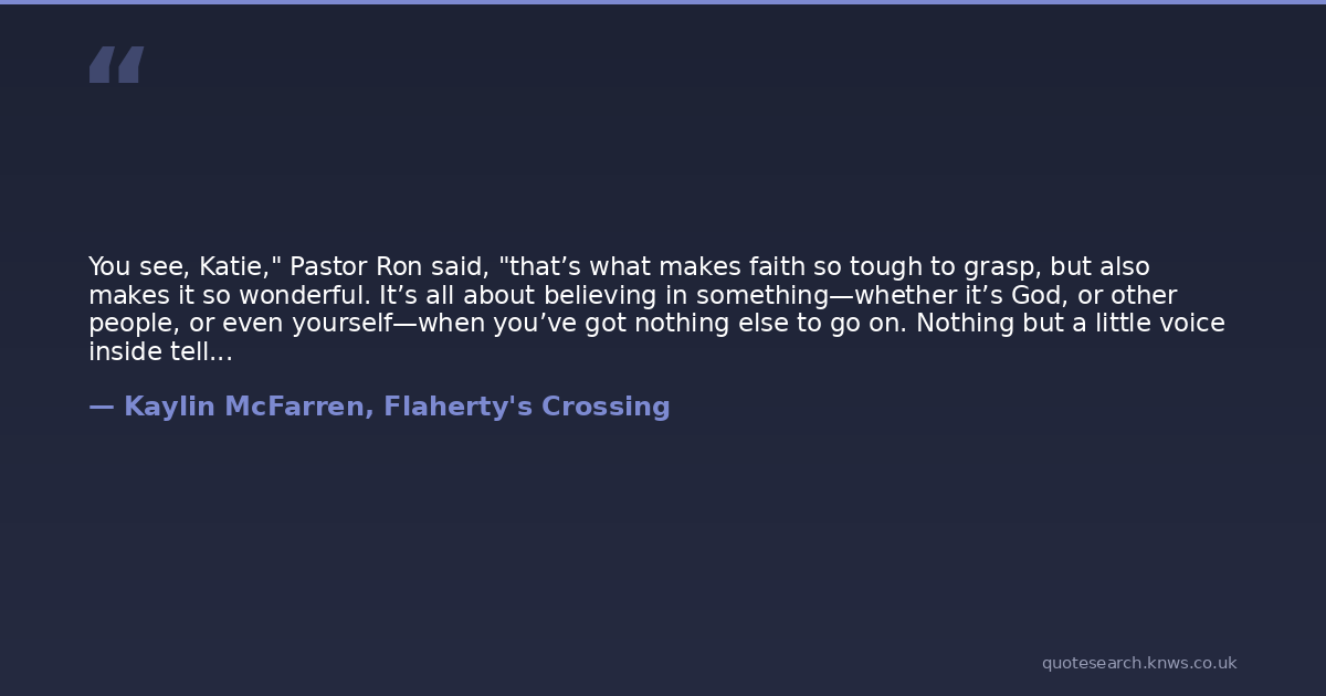 You see, Katie," Pastor Ron said, "that’s what makes faith so tough to grasp, but also makes it so wonderful. It’s all about believing in something—whether it’s God, or other people, or even yourself—when you’ve got nothing else to go on. Nothing but a little voice inside telling you it’s more than a hunch.