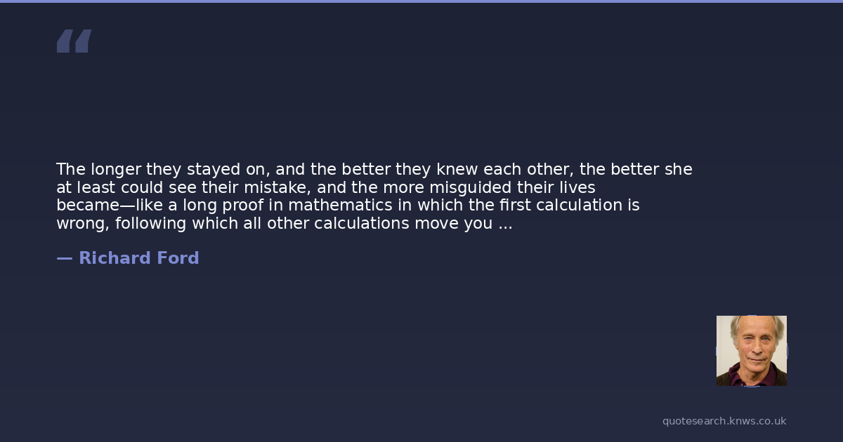 The longer they stayed on, and the better they knew each other, the better she at least could see their mistake, and the more misguided their lives became—like a long proof in mathematics in which the first calculation is wrong, following which all other calculations move you further away from how things were when they made sense.