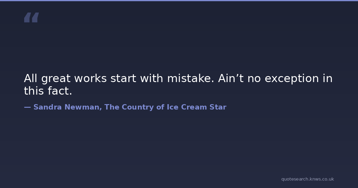 All great works start with mistake. Ain’t no exception in this fact. achievement imperfection mistakes success Download Image Share on X Share on Facebook Copy Link