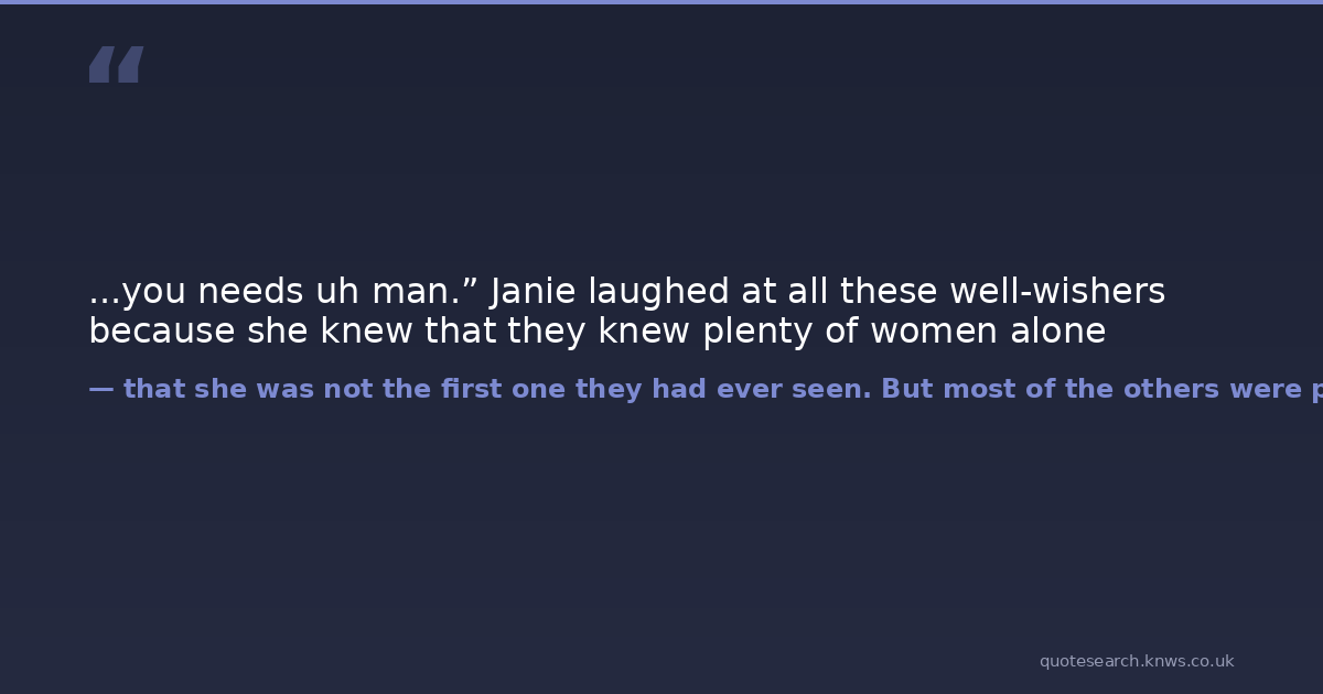 “...you needs uh man. Janie laughed at all these well-wishers because she knew that they knew plenty of women alone”