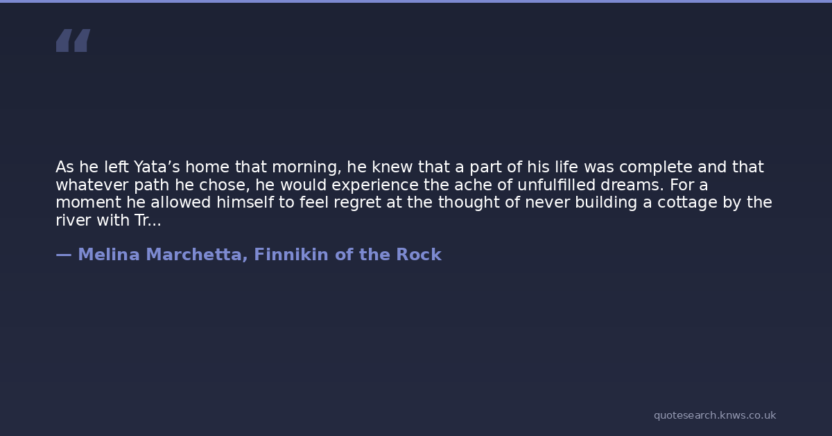 As he left Yata’s home that morning, he knew that a part of his life was complete and that whatever path he chose, he would experience the ache of unfulfilled dreams. For a moment he allowed himself to feel regret at the thought of never building a cottage by the river with Trevanion. Or living the life of a simple farmer connected to the earth. Or traveling his kingdom, satisfying the nomad he had become. To be Finnikin of the Rock and the Monts and the River and the Flatlands and the Forest. To be none of those at all.Yet he also knew that to lose her to another man would be a slow torture every day for the rest of his life.
