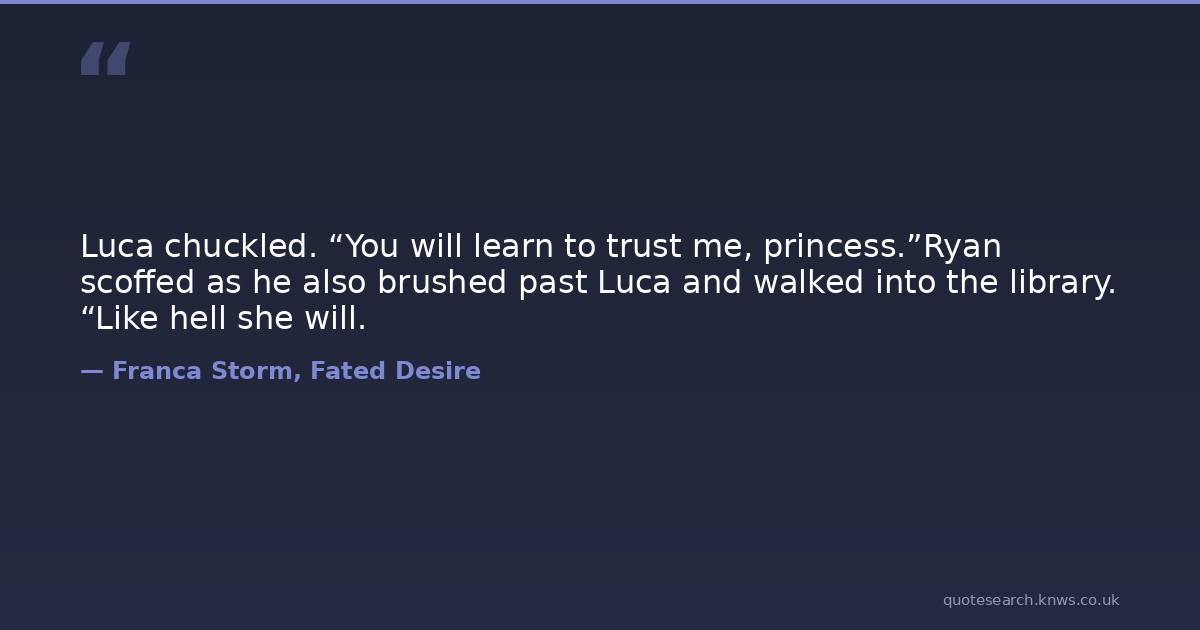Luca chuckled. “You will learn to trust me, princess.”Ryan scoffed as he also brushed past Luca and walked into the library. “Like hell she will.