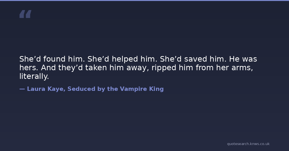 She’d found him. She’d helped him. She’d saved him. He was hers. And they’d taken him away, ripped him from her arms, literally.