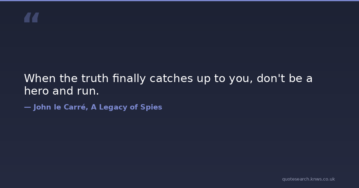 When the truth finally catches up to you, don't be a hero and run. bravery calm patient truth Download Image Share on X Share on Facebook Copy Link