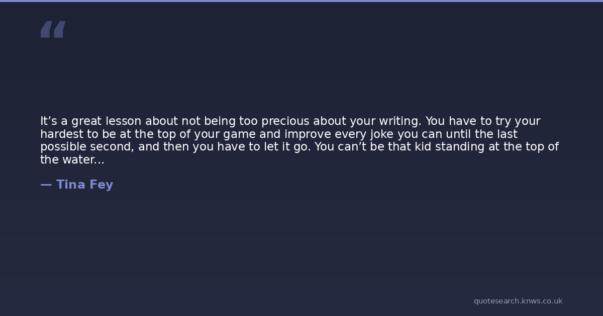 It’s a great lesson about not being too precious about your writing. You have to try your hardest to be at the top of your game and improve every joke you can until the last possible second, and then you have to let it go. You can’t be that kid standing at the top of the waterslide, overthinking it…You have to let people see what you wrote.