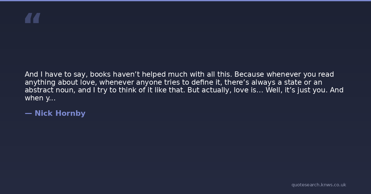 And I have to say, books haven’t helped much with all this. Because whenever you read anything about love, whenever anyone tries to define it, there’s always a state or an abstract noun, and I try to think of it like that. But actually, love is… Well, it’s just you. And when you go, it’s gone. Nothing abstract about it.
