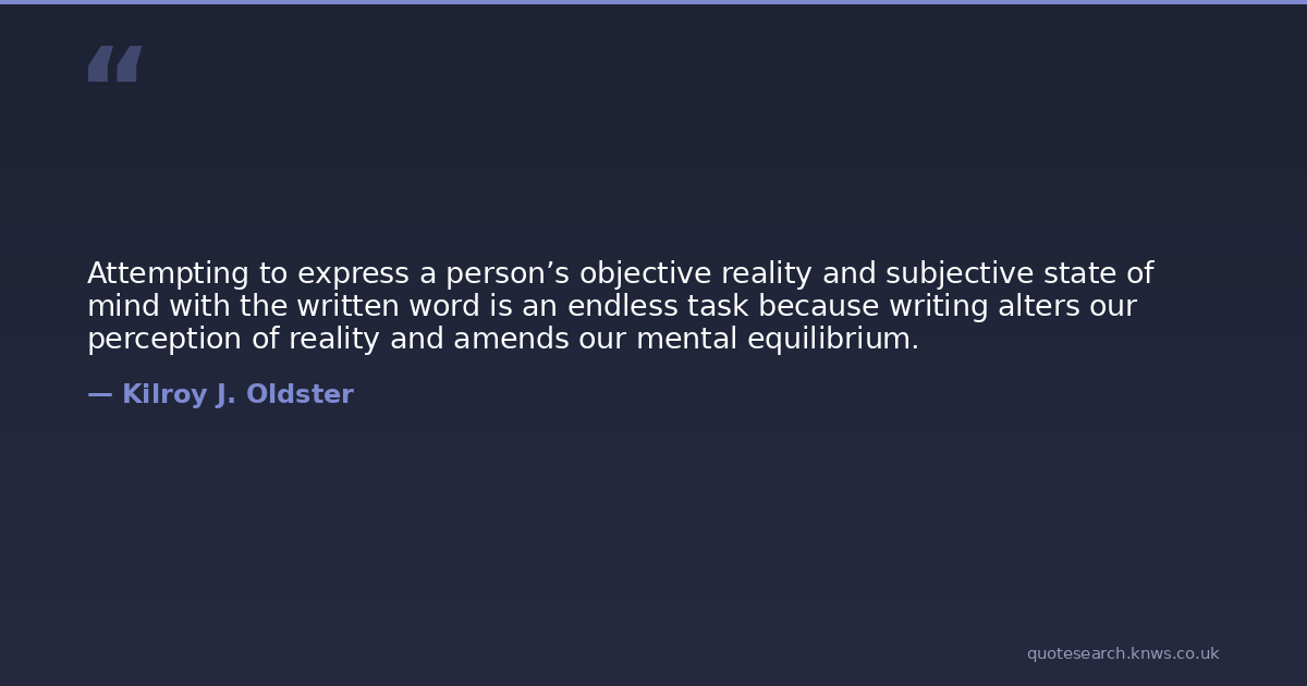 Attempting to express a person’s objective reality and subjective state of mind with the written word is an endless task because writing alters our perception of reality and amends our mental equilibrium.