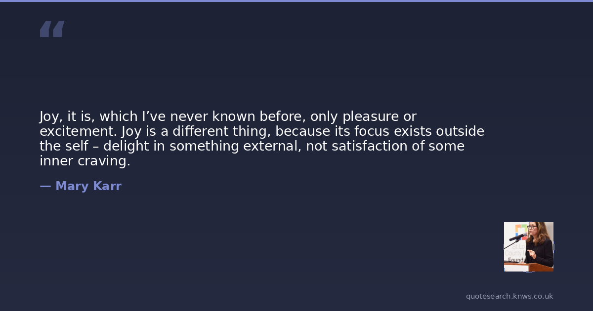 Joy, it is, which I’ve never known before, only pleasure or excitement. Joy is a different thing, because its focus exists outside the self – delight in something external, not satisfaction of some inner craving.