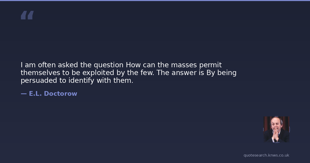 I am often asked the question How can the masses permit themselves to be exploited by the few. The answer is By being persuaded to identify with them.