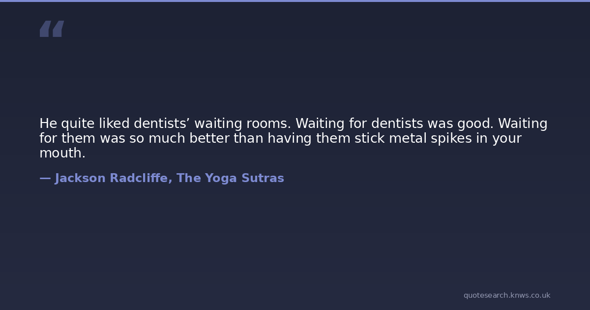 He quite liked dentists’ waiting rooms. Waiting for dentists was good. Waiting for them was so much better than having them stick metal spikes in your mouth.