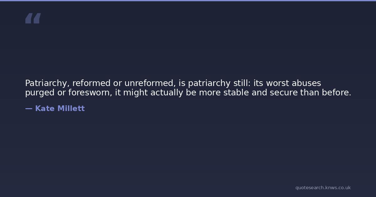 Patriarchy, reformed or unreformed, is patriarchy still: its worst abuses purged or foresworn, it might actually be more stable and secure than before.