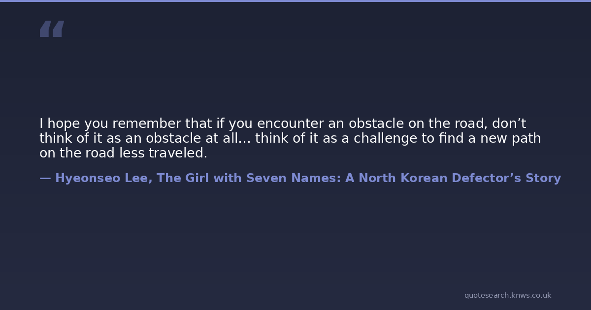 I hope you remember that if you encounter an obstacle on the road, don’t think of it as an obstacle at all… think of it as a challenge to find a new path on the road less traveled.