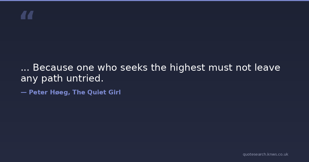 ... Because one who seeks the highest must not leave any path untried. highest path seek seeker seeking try Download Image Share on X Share on Facebook Copy Link