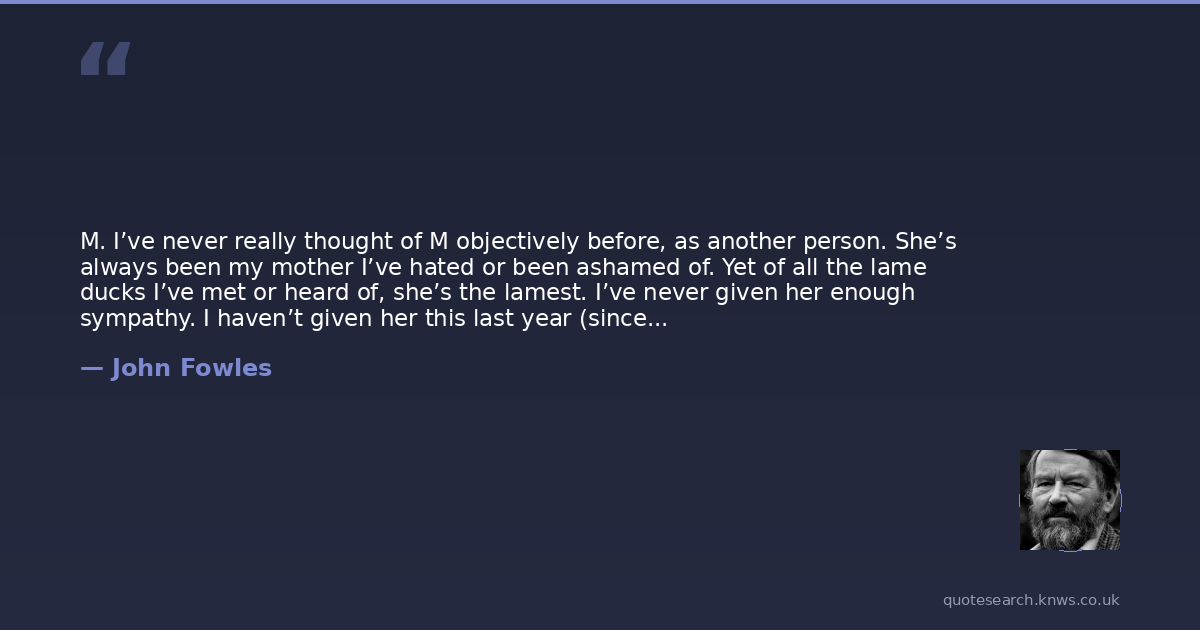John Fowles was a 20th-century English novelist. John Robert Fowles was an English novelist, critically positioned between modernism and postmodernism. His work was influenced by Jean-Paul Sartre and Albert Camus, among others. Read more on Wikipedia →
