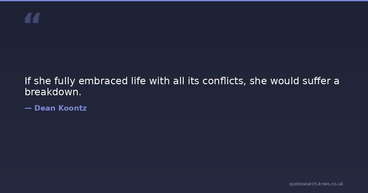 If she fully embraced life with all its conflicts, she would suffer a breakdown.