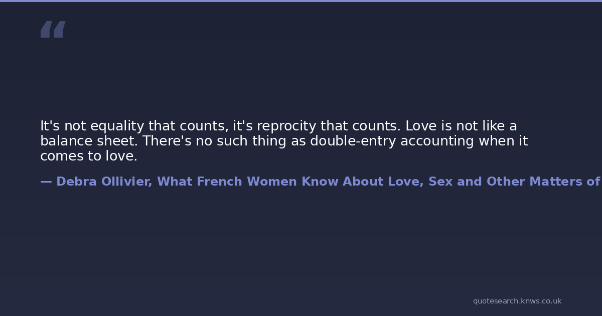 It's not equality that counts, it's reprocity that counts. Love is not like a balance sheet. There's no such thing as double-entry accounting when it comes to love.