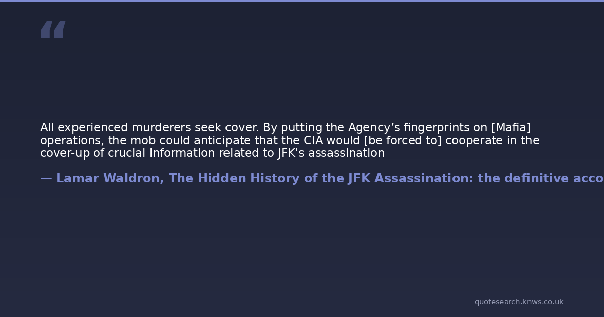 All experienced murderers seek cover. By putting the Agency’s fingerprints on [Mafia] operations, the mob could anticipate that the CIA would [be forced to] cooperate in the cover-up of crucial information related to JFK's assassination