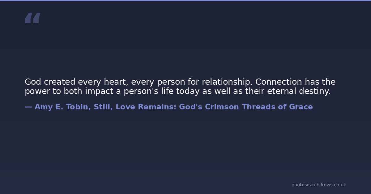 God created every heart, every person for relationship. Connection has the power to both impact a person's life today as well as their eternal destiny.