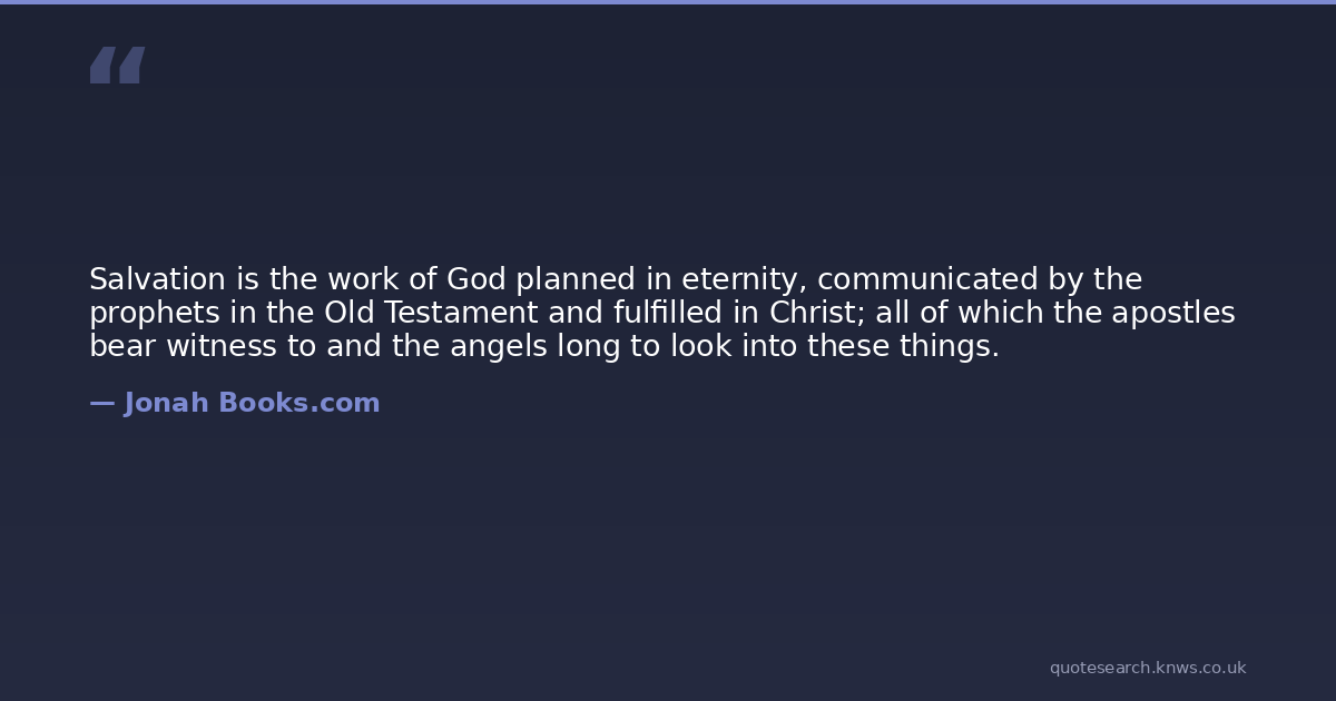 Salvation is the work of God planned in eternity, communicated by the prophets in the Old Testament and fulfilled in Christ; all of which the apostles bear witness to and the angels long to look into these things.