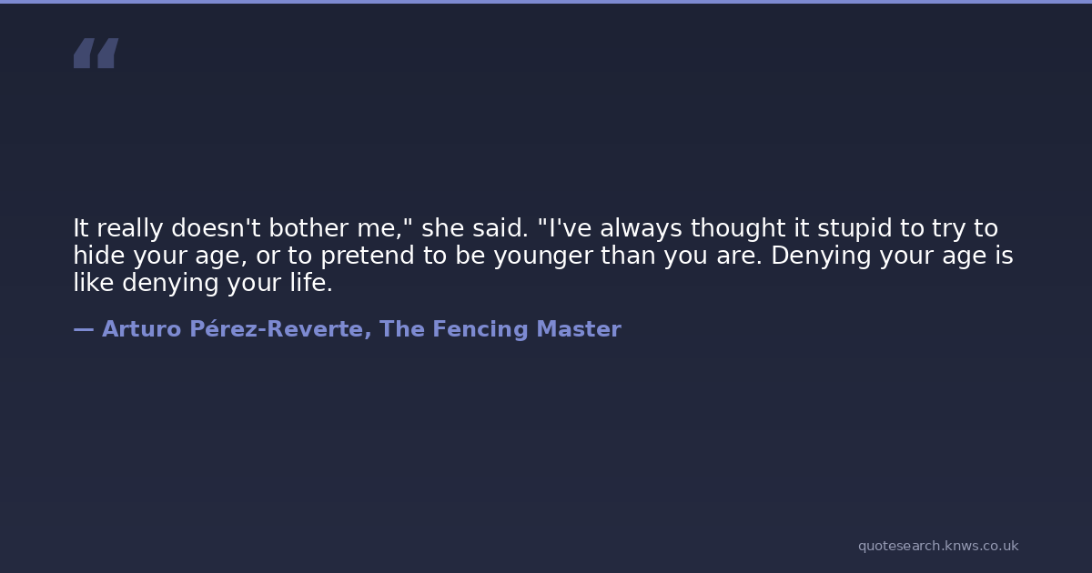 It really doesn't bother me," she said. "I've always thought it stupid to try to hide your age, or to pretend to be younger than you are. Denying your age is like denying your life.