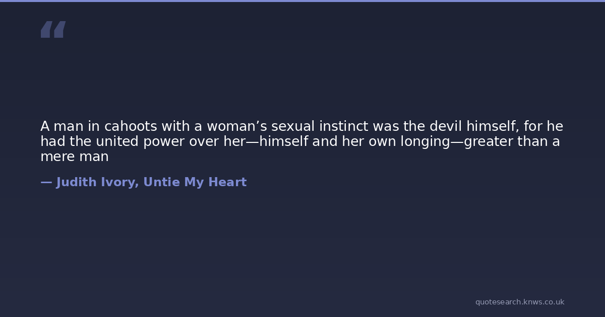 A man in cahoots with a woman’s sexual instinct was the devil himself, for he had the united power over her—himself and her own longing—greater than a mere man