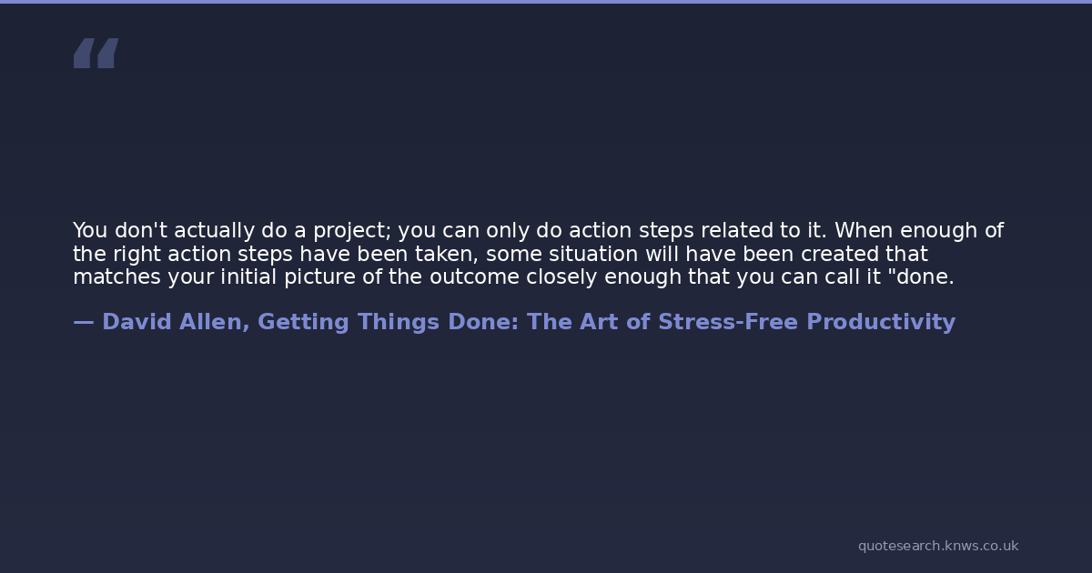 You don't actually do a project; you can only do action steps related to it. When enough of the right action steps have been taken, some situation will have been created that matches your initial picture of the outcome closely enough that you can call it "done.