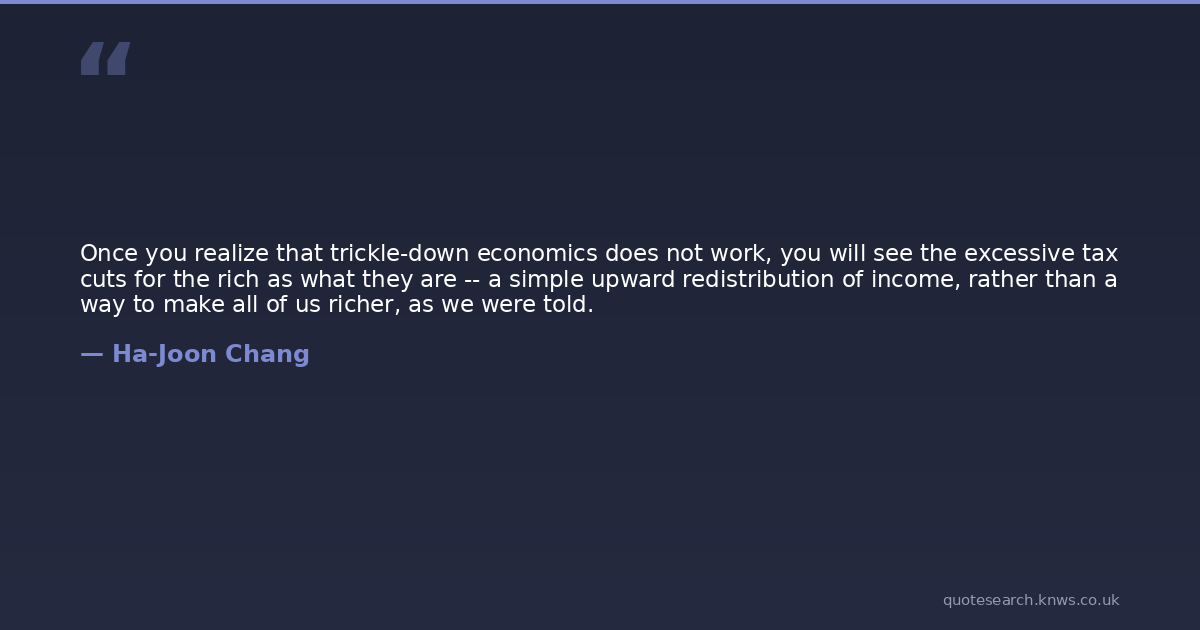 Once you realize that trickle-down economics does not work, you will see the excessive tax cuts for the rich as what they are -- a simple upward redistribution of income, rather than a way to make all of us richer, as we were told.