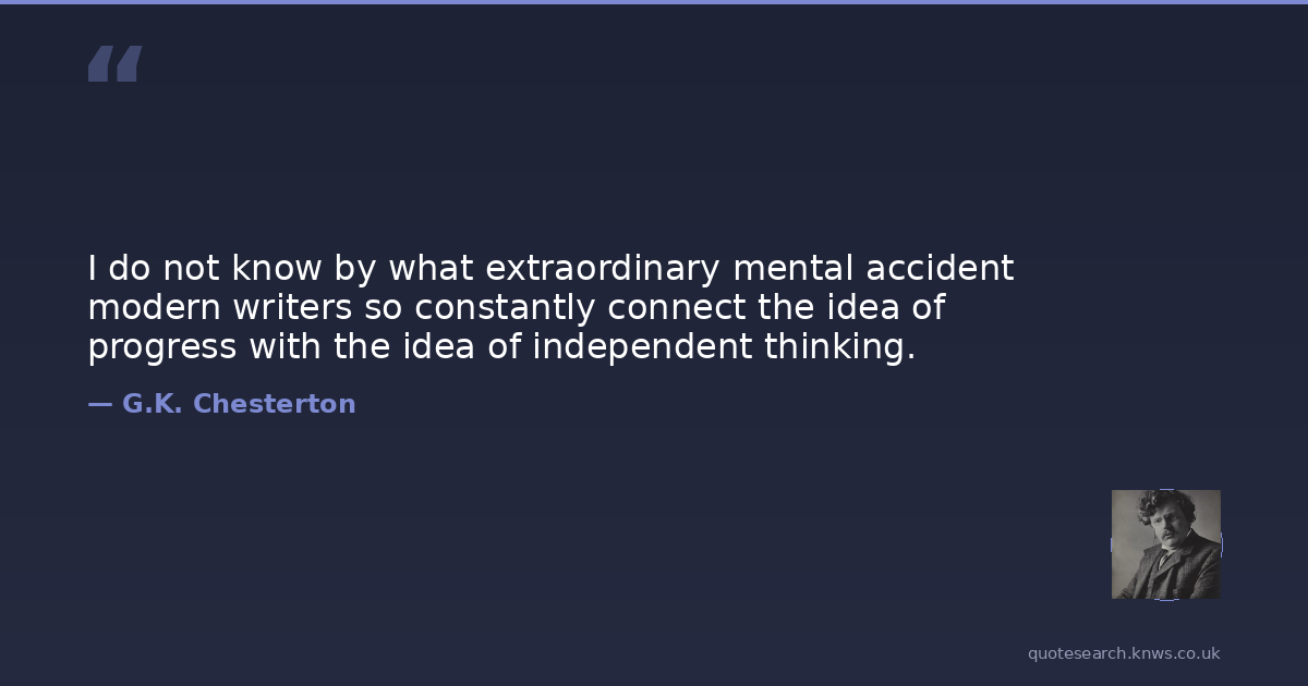 I do not know by what extraordinary mental accident modern writers so constantly connect the idea of progress with the idea of independent thinking.