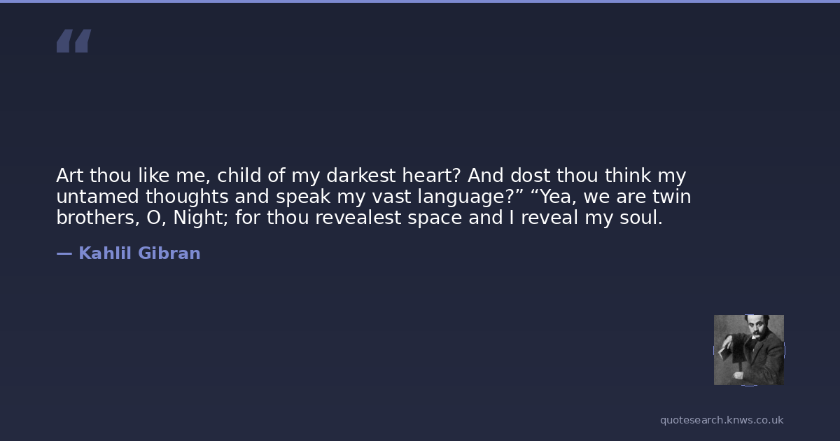 Art thou like me, child of my darkest heart? And dost thou think my untamed thoughts and speak my vast language?” “Yea, we are twin brothers, O, Night; for thou revealest space and I reveal my soul.