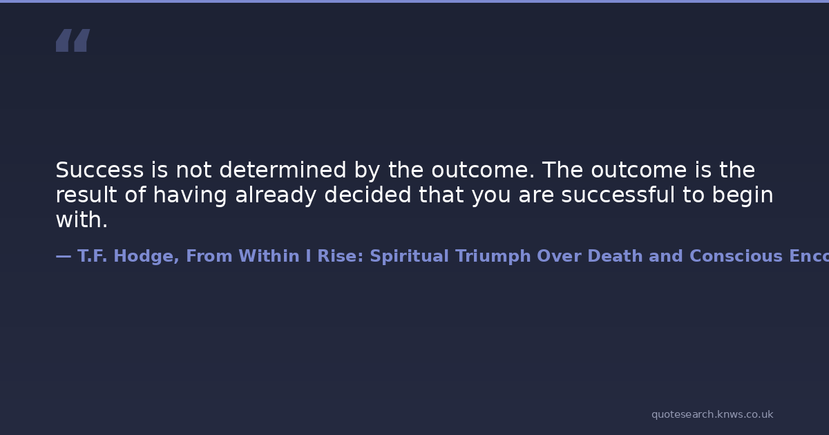 Success is not determined by the outcome. The outcome is the result of having already decided that you are successful to begin with.