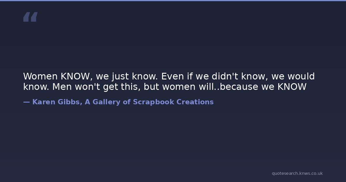 Women KNOW, we just know. Even if we didn't know, we would know. Men won't get this, but women will..because we KNOW funny-quotes sarcasm women-and-men Download Image Share on X Share on Facebook Copy Link