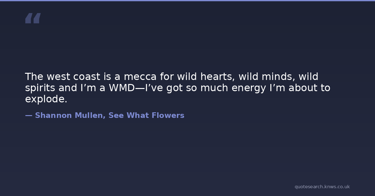 The west coast is a mecca for wild hearts, wild minds, wild spirits and I’m a WMD—I’ve got so much energy I’m about to explode.