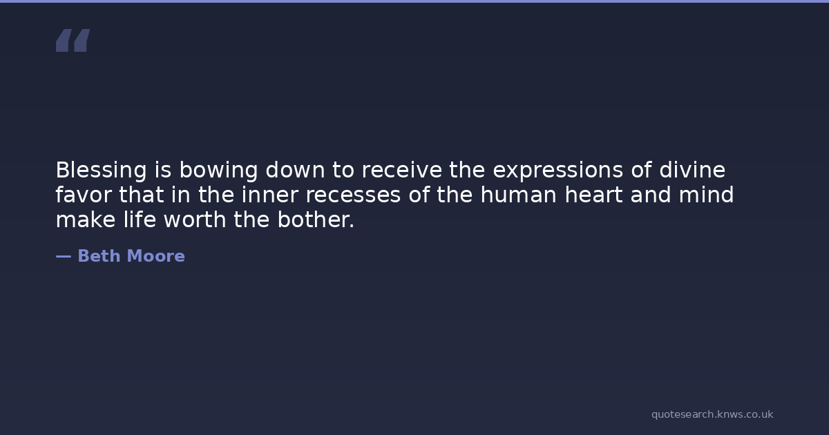 Blessing is bowing down to receive the expressions of divine favor that in the inner recesses of the human heart and mind make life worth the bother.