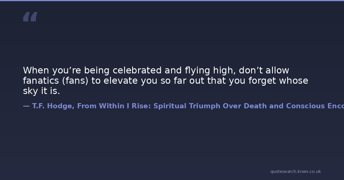 When you’re being celebrated and flying high, don’t allow fanatics (fans) to elevate you so far out that you forget whose sky it is.