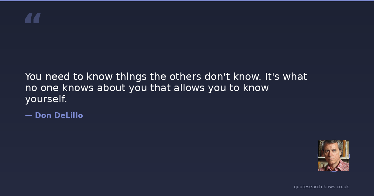 You need to know things the others don't know. It's what no one knows about you that allows you to know yourself.