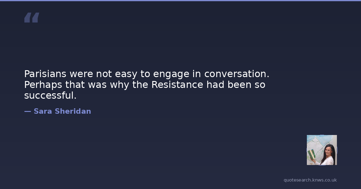 Parisians were not easy to engage in conversation. Perhaps that was why the Resistance had been so successful.