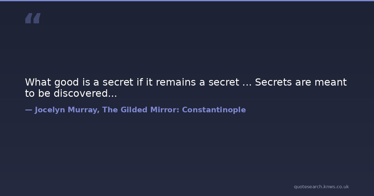 What good is a secret if it remains a secret ... Secrets are meant to be discovered... discovery revelations secrets Download Image Share on X Share on Facebook Copy Link