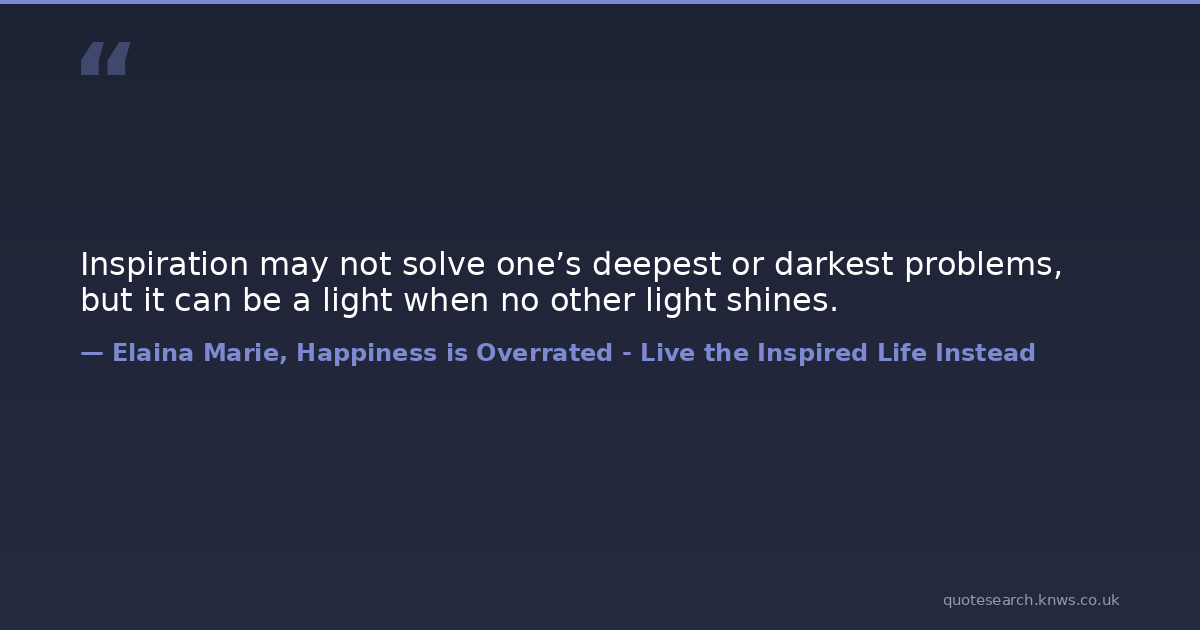 Inspiration may not solve one’s deepest or darkest problems, but it can be a light when no other light shines.