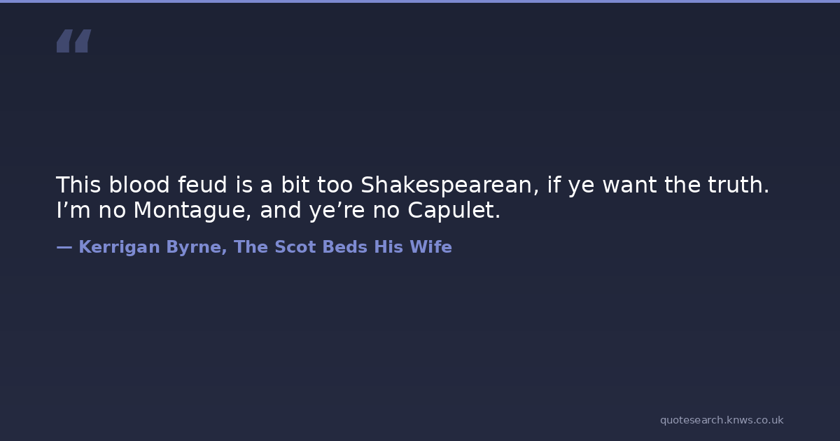 This blood feud is a bit too Shakespearean, if ye want the truth. I’m no Montague, and ye’re no Capulet.