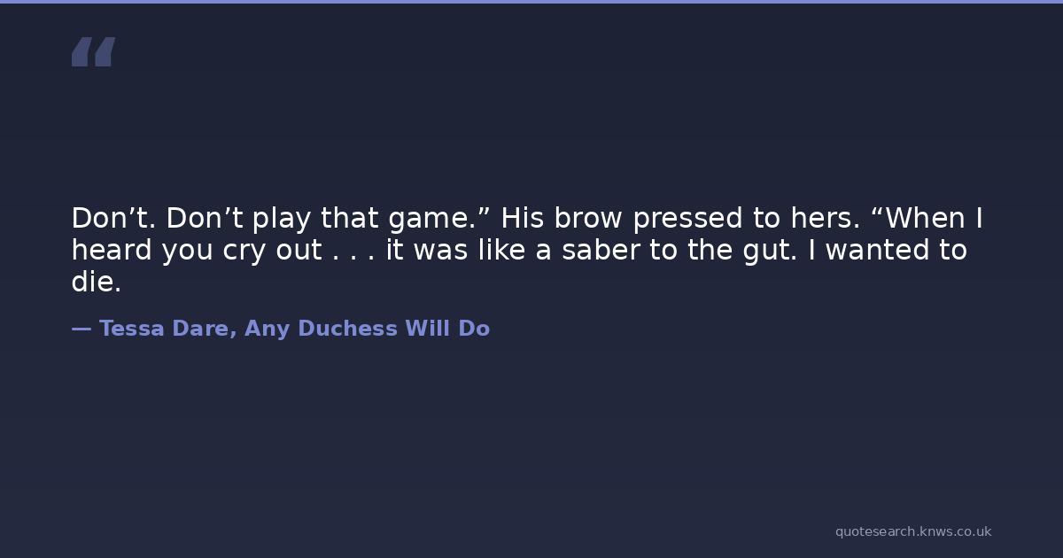 Don’t. Don’t play that game.” His brow pressed to hers. “When I heard you cry out . . . it was like a saber to the gut. I wanted to die.