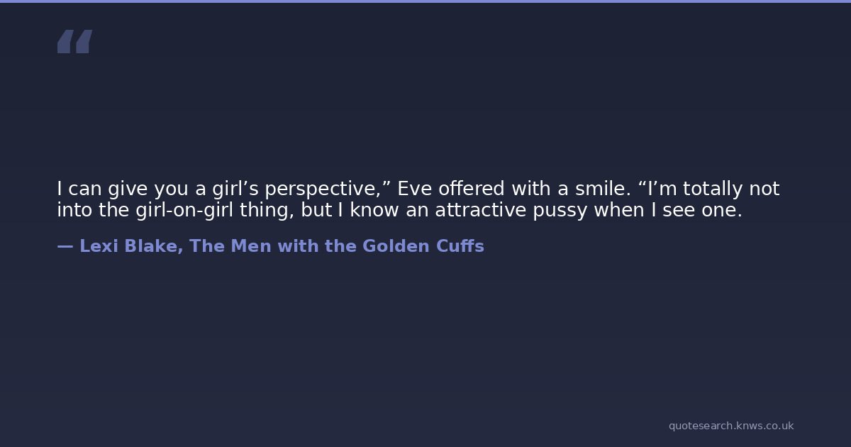 I can give you a girl’s perspective,” Eve offered with a smile. “I’m totally not into the girl-on-girl thing, but I know an attractive pussy when I see one.