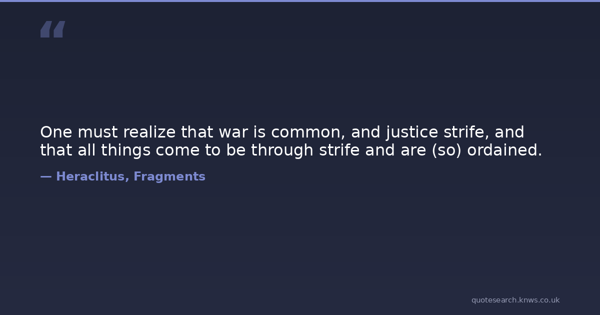 One must realize that war is common, and justice strife, and that all things come to be through strife and are (so) ordained.