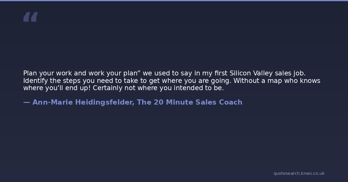 Plan your work and work your plan” we used to say in my first Silicon Valley sales job. Identify the steps you need to take to get where you are going. Without a map who knows where you’ll end up! Certainly not where you intended to be.